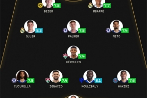 sofascore世俱杯八强战最佳阵:姆巴佩&帕尔默领衔,多纳鲁马在列