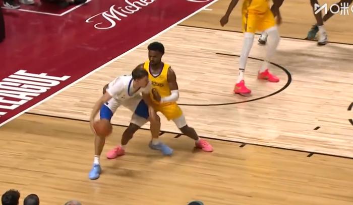 尝试切布朗尼上路,身高臂长的弗拉格优势尽显,直接翻身干拔,布朗尼望球兴叹